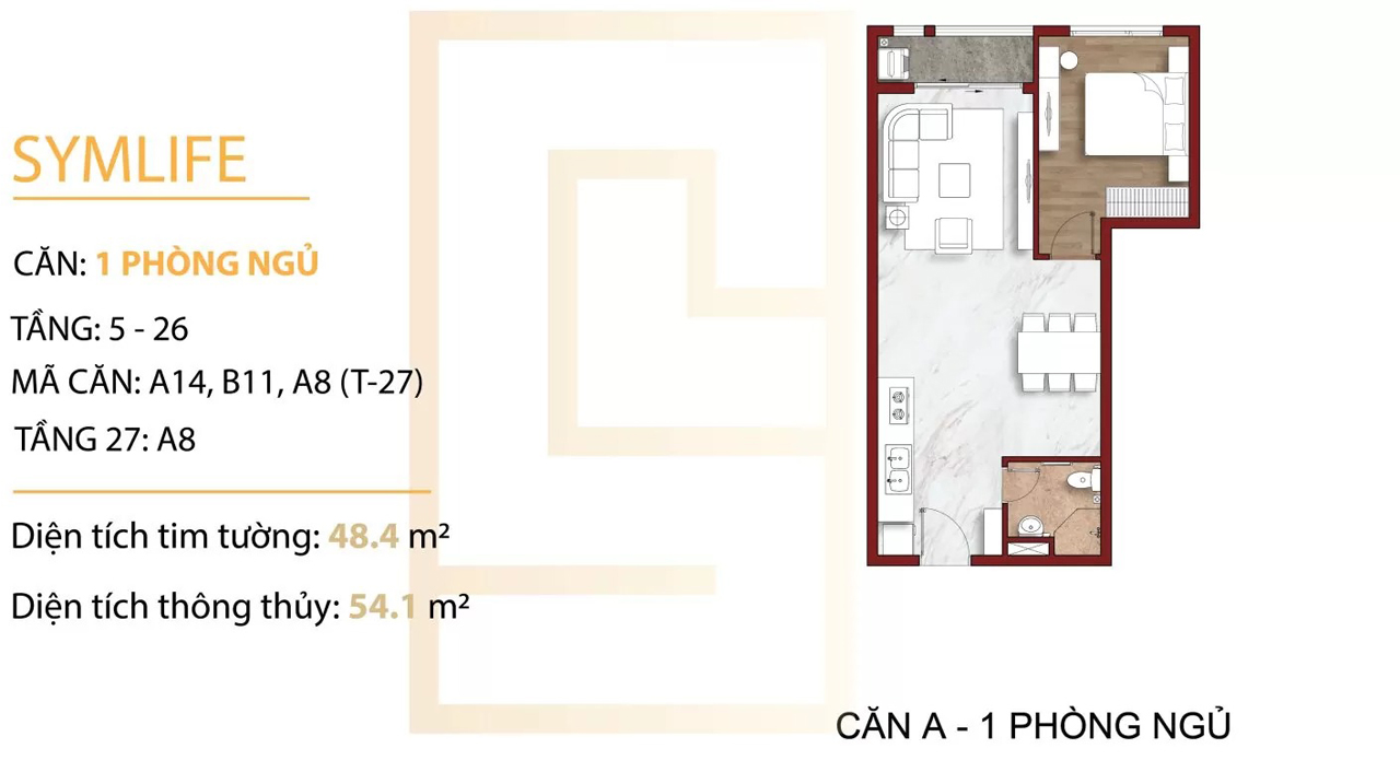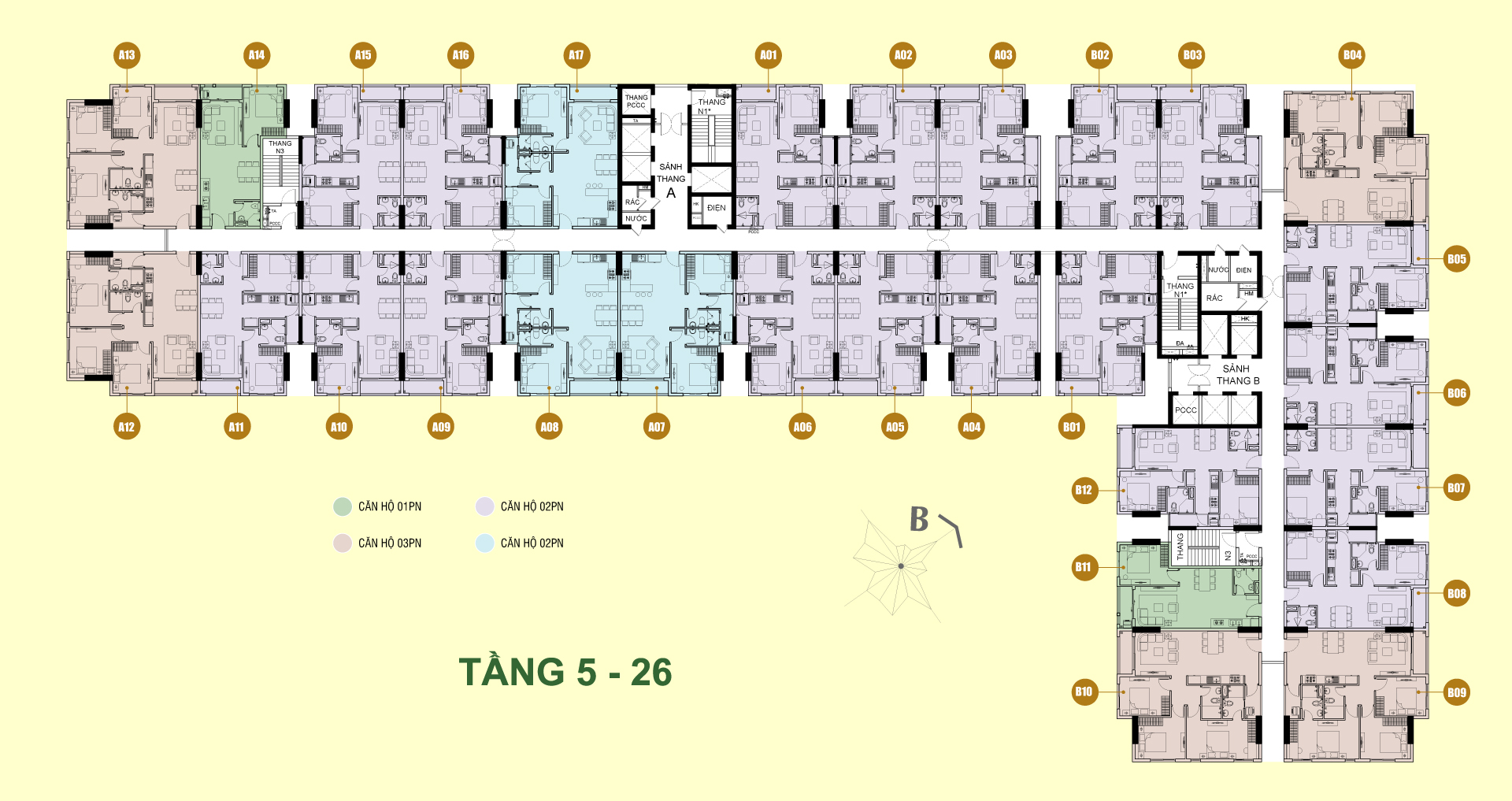 Diện tích căn hộ: | 52 – 70 – 80 – 92m2 (01 – 03 PN) |